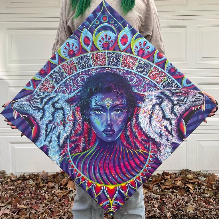 This piece represents the power of visualization; seeing yourself achieve your goals and believing it will happen. Rather than just daydreaming, it’s about also making a plan of attack and being unafraid to take action with ferocity. It’s about finding a balance of faith and discipline and doing whatever it takes to become the person you’re meant to be.